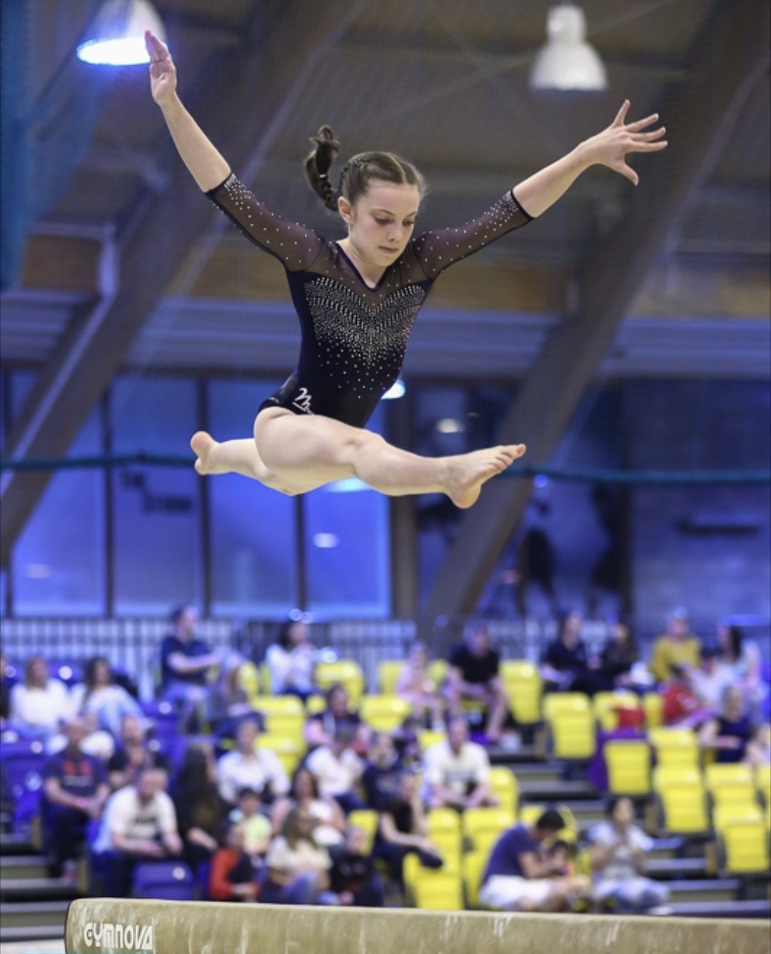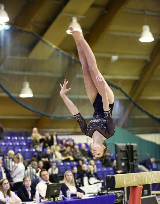 This awe-inspiring piece of apparatus is 5m in length, 125cm high and only 10cm wide. Requiring tremendous nerve and balance, the exercise combines artistry, acrobatic elements, balances, leaps, jumps and turns and finishes with a dismount demonstrating flight and precision landing.